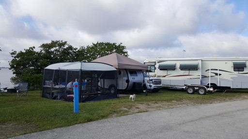 Long Point is a great family oriented campground and has access to the river and is close to Sebastian Inlet for access to the ocean. If you like water recreation, this is the campsite for you. Bring your own gear because they do not rent equipment. All lots around the perimeter of the grounds are on the waterway and many of the spots you can park your boat right in the water next to your camp. There is a boat ramp and fish cleaning station. There are multiple facilities with bathrooms, showers and laundry. There is full electric and water hookups with a dump station. The water here is well water that has a sulphur smell. Although unpleasant to smell and taste, the water won't harm you. I recommend you bring jugs of fresh water with you when camping to use for drinking and cooking. Many of the perimeter camp sites are very low to the water and are prone to flooding. Because you are surrounded by water and you are in Florida, bugs can be a problem.