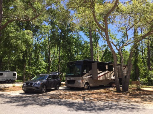 Stayed here for 4 nights in a Class A. Great RV Park with lots of trees for shade. We were in site 56. Laundry rooms a very clean, staff very helpful and friendly. They have a small gym which is adequate and clean which we used. There is a nice size dog park and a nice swimming pool though we didn’t use either. About 10 min drive to get into dt St. Augustine. Would definitely stay here again.