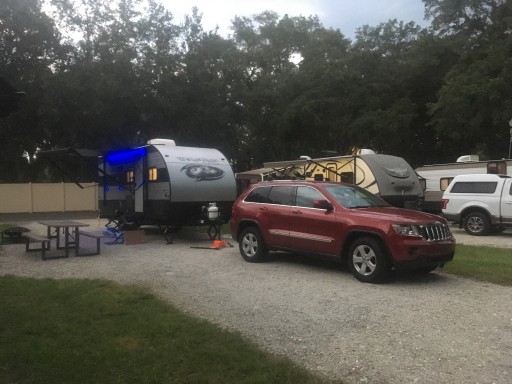 Compass RV Park is very nice. The staff is all helpful and friendly. We didn’t do any of the group activities because we stayed during a cold snap. Lots of big live oak trees for shade and clean restroom and shower. Will definitely stay here again.