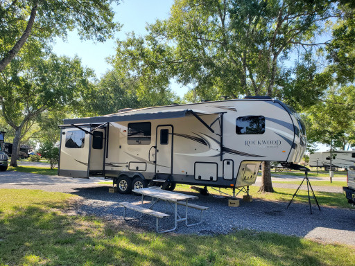 We stayed here for our very first night camping after we picked up our RV. Nice place! Big beautiful bathroom, gym, dog parks, pond, pool, live music, free s’mores, friendly staff, laundry, etc. Highly recommend!
