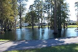 Mostly RVS and Campers in the front. Mostly Park Models in the back. Has some maintenance issues else it would be 5 star. Nice big pool. Pretty pond with Cypress trees. Nice people.