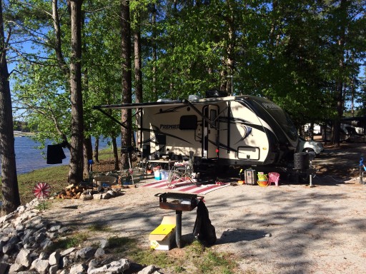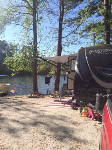 Peninsula surrounded by water on three sides. Spacious spots (some are pull-through) in a pristine environment. Helpful, friendly staff. Evans GA fifteen minutes away with convenient restaurants and shopping. I will return again and again.
