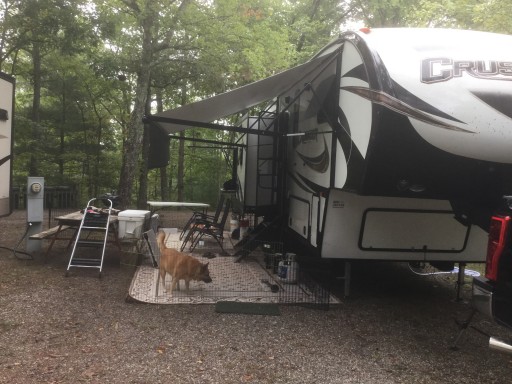 I used to back tractor trailers many years ago so I'm better than most RVers at backing but smart enough to realize the issues with this site. Visibility would be much improved from a tractor so I let them back me out and I hitched up near the entrance to the campground rather than have the kind of experience I observed previously. The moral of this story is, if you camp here let them put your rig in and out if you see issues!