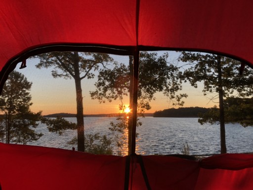 We spent one night here in July. It was in the 90s when we set up and then high 80s the next day. But by late that night/early in the morning there was strong wind coming from the lake and it got pretty chilly. Maybe high 50s or low 60s. Not sure if that’s a common occurrence or a freak thing that happened the night we stayed. Clean campground with a couple nice beaches. The spots have a fire pit & a separate grill for cooking. Some spots are better than others. We stayed in 52 in a tent & it was shaded with an awesome view of the lake and sunrise. Bikes would be helpful since the bathroom is so far. And rafts, beach chairs & umbrellas for the beach could come in handy.