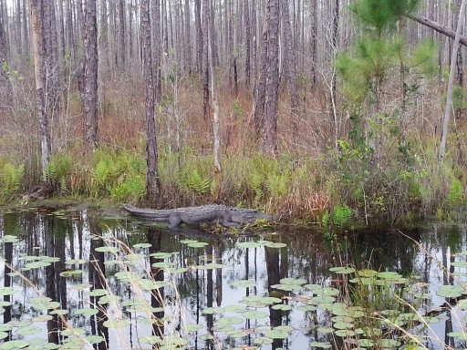 This could be a delightful place to visit. It is immediately across from the entrance to the Okefenokee Swamp, the grass and wooded sites are level and they have full hookups, tent sites and cabins. But, the owners apparently do nothing to control the hundreds, no millions, of flies that drove is into our motorhome! This is not an exaggeration!