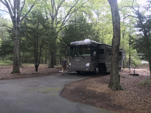 We drove in to check it out, looking for a campground. As some said, the sites are spread out with plenty of room between neighbors. BUT, the patio/outdoor living areas are on the wrong side of your rig. You have to go out your door and walk around to the other side to get to the picnic table and fire ring. Also, when you step out of your rig and go down your steps watch out for that last step to the ground. The end of the driveway doesn't widen out to give a landing off that last step. You'll be stepping off immediately onto a sloping hill or other tripping or falling hazard. The parking pad is a good 5" above the ground, so if you figure your last step is about 7" above the level of the pad, you're looking at a 12" last step. Onto a sloping hill. In the dark. A recipe for a broken, or twisted ankle. There are nicer COE campgrounds in the area. Nice water access, though.