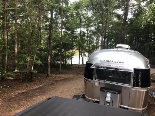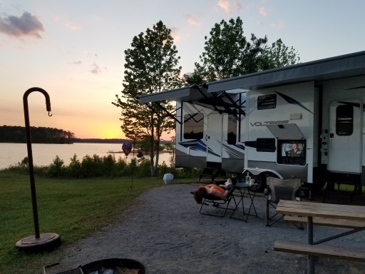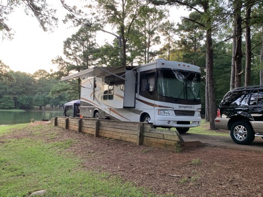 This campground has plenty of space with large camping sites so you aren’t right on top of other sites. This was our first night after getting our rig and I wish we could have stayed another night or two. We had plenty of privacy and backed to the lake. Site 97 was awesome and I would recommend. No dumping at campsite, but they have a dump station for your way out.