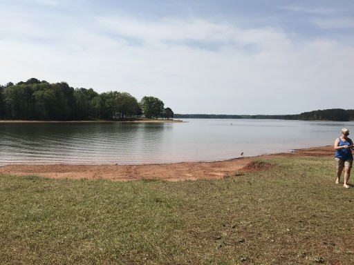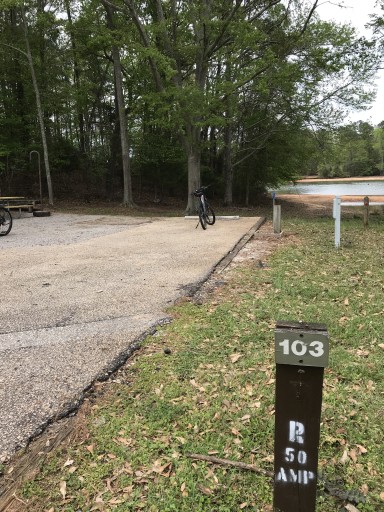 Our first trip to this campground was enjoyable and we will definitely camp there again. We were on site 56 on the water. The site was large with a pad for a tent. We launched our kayaks from the area on our site. The water was warm and the campground was clean. We had a lot of space between us and our neighbors.