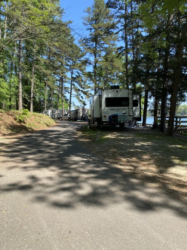 Nice park!! Watch out for low hanging branches. We were on the lake and had a great view and a great time. We stayed during the week in May and it was quiet. We will be back.
