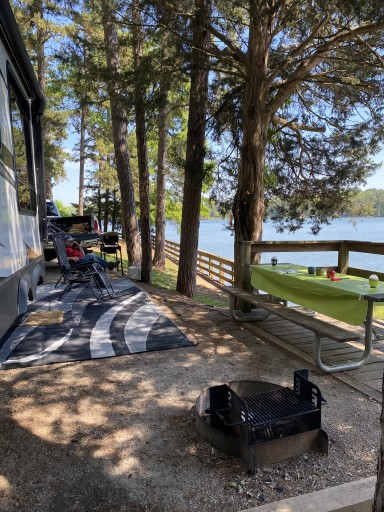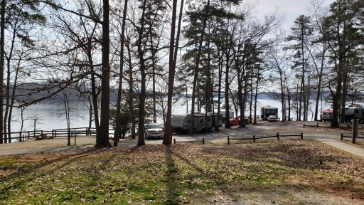Stayed for Thanksgiving. Had a great view of the lake, but had to look through the cars. There was more traffic than I would have liked. We were closer to our neighbors than we were at home, so it was not really relaxing. Bathrooms were very clean, great water pressure. Level site. Some sites were so close to the road, the corner of the camper was right at edge of road. The picture is our view from picnic table, the site next to us. We had people in front, people in back, people behind. Too much and too close, we probably won't be back, unless we can spot a good, somewhat private site.