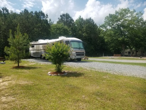 Stayed here the past three nights. This place is awesome! Huge sites, beautiful surroundings and fantastic staff. Cutest little buildings for laundry, showers etc. They have an outdoor dog wash we used with warm water right outside the laundry room. We had to do an RV repair here and stayed longer than first anticipated so the staff offered to help, brought us some supplies to use and kept checking on us. We shared an Easter potluck with the staff and other campers that was very nice. Talk about true Southern hospitality. Would love to come again if we’re in this part of the country.