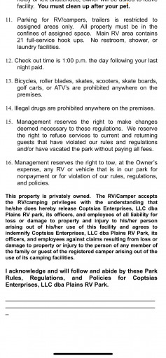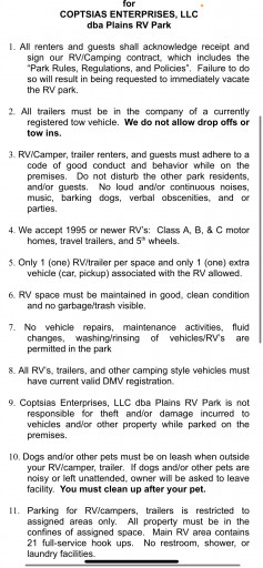 Water, Electric, Fifty Amp, Sewer, Pets allowed