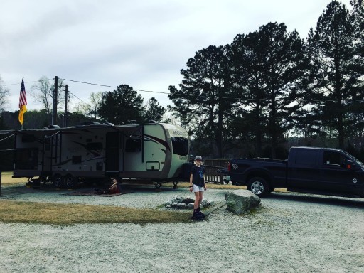Site was recently washed out and rocket scientist rebuilt using mud and mulch. No fire pit. Site had 1” over mud on paved and concrete pad. Barely could fit our 25’ Trailer on there. No power when we arrived but was fixed before we finished set up. Probably will never get the GA red clay stains out of our trailer and outdoor mats. Not the best Christmas excursion.