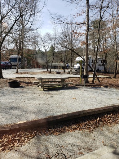 Fresh Wood chips laid down on the trails and campground. Despite being on a Hill most sites are relatively level. The 25’ and under sites are gravel while the 26’ and up sites are paved. New appliances in the laundry facilities. It was very cold during our stay but the bath house was nicely heated and clean. Playground was also relatively new and accessible. The one drawback was the road noise, but considering the proximity to hiking trails it was worth it.