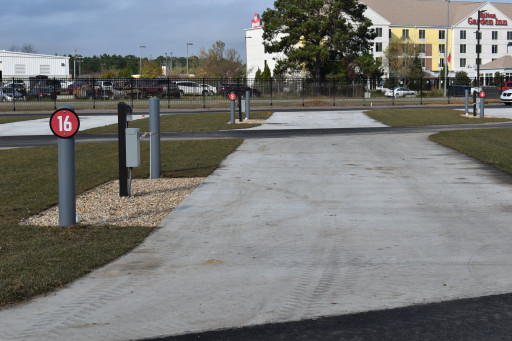 Located just off of I-75 at Exit 62 in Tifton, Georgia, Tifton Overnight RV offers travelers a safe and secure place to stop with full hook ups, pull through sites, a fenced dog park, and fast WIFI.
