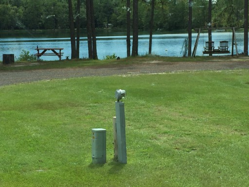 Very nice hosts, very helpful, nice scenic lake, dog friendly, well kept grounds , quiet,clean. Laundry, game room lodge, no showers.We stayed over night but a few would have been good, easy off/on to I-95