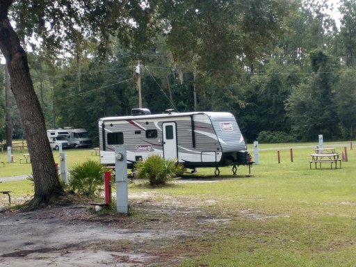 We lucked out because everything else close to Savannah was either too expensive or had no space. This park has all the amenities we use plus a pretty lake and a helpful staff. The owners live on the premises and helped my husband with a issue we were having with our trailer due to a nearby lightening strike while we were in Florida. We were also able to get a wonderful and trustworthy dog sitter thru the owners. We were sitting on the sightseeing trolley in Savannah 40 minutes after leaving our RV. A clean, comfortable, accommodating and safe park only 1/2 mile off the interstate with food & fuel nearby. $30 per night.