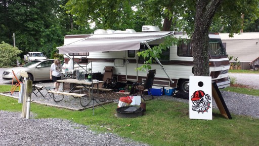 With a microcamper, we were able to stay on site 61, usually reserved for tents but given to very small rigs on occasion. W/E, near the bathroom, fully shaded and backing onto the disc golf meadow. Most KOAs resemble parking lots, but this one has varied terrain and lots of trees. Showers are centrally located adjacent to the office and are spacious and clean. 20 min to Chattanooga. Check yourself for ticks in this region.