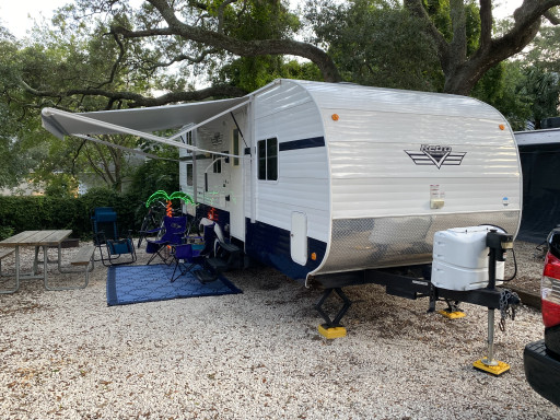 This is a city run park on a tourist island. Expect smaller spots and close neighbors. It’s always busy. We used it as a place to sleep and eat. Wonderful pool. Nice staff. Beach is a comfortable walk away. 50 amp service was wonderful.