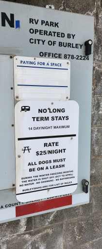 Stayed here 1 week. Cost is fixed, pay by the day at a card machine. New park, we were the first to use it. Close to town, right on the water. Great for a stopping place. Restroom open.