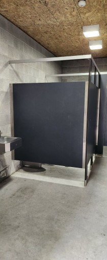 The downside is it is in an industrial area with ample commercial truck traffic. It is in the wide open with only one tree on site A1. The people who have been here during our stay seem to be people working in some of the industries here. So it feels a bit transient. There is no host on site. The shower and bathroom building is extremely basic. Just a cinder block building with metal toilets, sinks, benches.