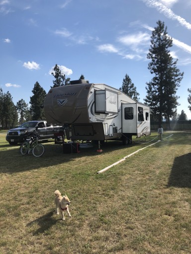 Large sites, Easy back in on grassy sites, Check-In box at the entrance to the RV sites makes Check-In simple. Water and Electric only no dump at lodge but there is a list of local dump locations on the park info and rules sheet. Lodge is in a great location to visit the area.