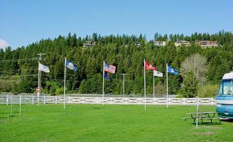 We LOVED the park. Actually stayed 2 more days! Nice staff, clean park, clean laundry, nice trail to walk, GREAT pull-thrus with plenty of space to get in & out of! But most of all they have many of our Beloved United States of America flags & our Canadian neighbor flag, flowing through out the park! As Veterans & United States of America citizens, we are honored that the park does this. THANK YOU!!! God Bless you!