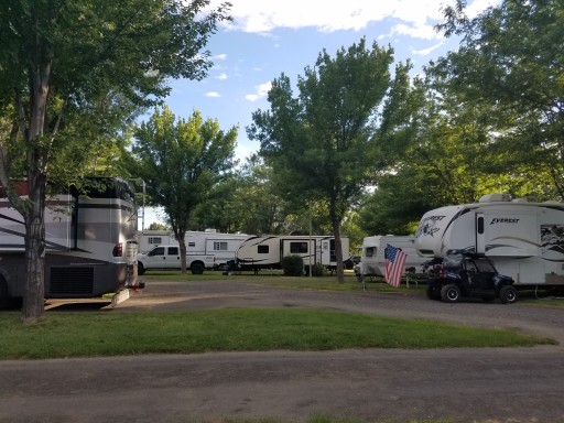 The dump is at the bottom on the road, it is easily overlooked. Look low, not high. It’s about across from the State Transportation warehouse and a hardware store. But, hey, it’s free. Comes with a hose and non-potable water. There are two sewer dumps.