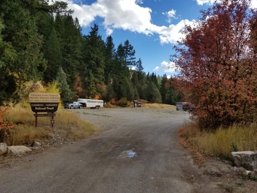 National Forest Campground. Closes end of September. Small (8) spaces but has separate horse trailer parking area. Creek & hiking trails.