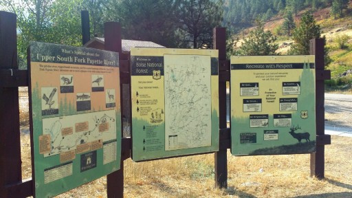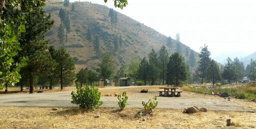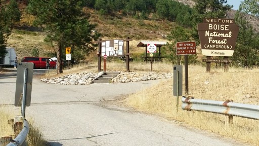 USFS primitive campground, off the road a little with LOTS of hot spring pools, some right on the river. Pools are not too hot to dip a toe or even soak a little. Some pull - through sites with loop entry. If towing or big rig, do not go into the lane at the upper end, as turning is a problem if populated. Some sites have covered tables to keep it cool in summer. Some limited local hiking around the springs.