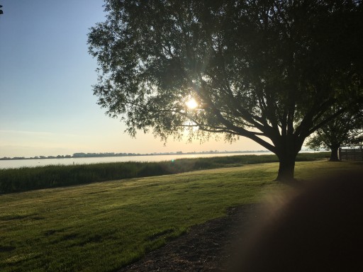 Good space between sites. Some shade. Wonderfully lush green grass, songbirds, and a refreshing lake to view and swim in.