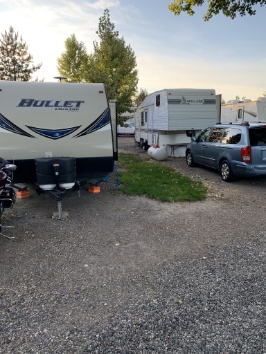 Took a chance and it paid off. Through farm country to the campground. As we rolled through some back roads we began to second guess our decision, but when we arrive all I could say was WOW! New campground on the shores of the lake. At 100 degrees it was a welcome sight. Clean, Green and Quiet. Well almost…. Lots farm traffic on road next to camp. Its on our list now! Thx Twin Falls!! 🎣⛺️🚤🐾.