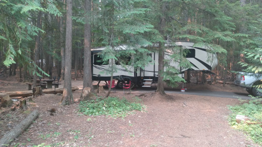 Very off the beaten path. Very dense forest I expected to see flying monkeys in the dark and foreboding forest. No phone or internet connection. The smoke was terrible all but one day we were there. The smoke was so thick we couldn't see the other side of the lake. I am still giving 5 stars as the smoke is irrelevant to the campground setting. If you are looking to get away from it all this is the place. $11 with geezer pass.