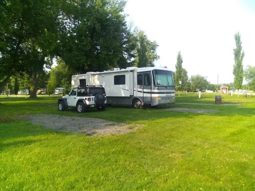 Beautiful park with ponds for fishing, really nice playground, several large shelters, multiple ball diamonds, frisbee golf course, plenty of places to ride bikes, run or walk, and horse arena. Shower house and bathrooms are decent. Dump station is easy to get in. No sewer sites Camping spots are mainly grass with some millings for parking pads. Flat sites. 25 or so Electric pedestals and water hydrants scattered throughout. Very quiet. Shaded or full sun sites available. Safe environment. Campground manager lives across the street from campground. One thing to note, horse shows run monthly from May to September on one weekend usually. There will be horses and trailers in the campground until late. Horse owners are usually very respectful of the campers and they will have an amazing concession stand open during the shows. Town this is located In has over 12 World’s Largest and a bunch of really big things. Check out “big things in a small town” on Facebook or the internet.