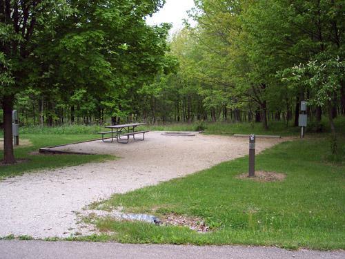 Stayed a week in a pop up. One full service bathhouse for 150 sites, other facilities are pit toilets with 1-2 buildings per loop. Bathhouse could use some maintence, especially the showers. Sites have electric only, but potable water is available at the dump station. Our site was pretty good... next to bathhouse, full shade, no one behind us, and a fair distance from the site next to us. Some sites are very close together with little separation, most have decent shade. Fire pits are huge, and we found that they were difficult/potentially dangerous to manage cooking over a small-medium fire in the middle of the pit unless the fire is built right on the edge of the pit which is weird too. Small camp store with wood, ice, necessites, and soft serve ice cream. On the day use side of the park there is a nice restaurant, boat launch and rentals. Great fishing and nice hiking. Decent campground since its only about 45 minutes from the far western suburbs of Chicago.