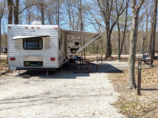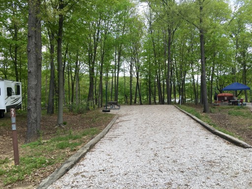 We stayed at site 121, full hookup. Water and sewer hookups are pretty far apart so be sure to park centered between them. View is great, no sites to block the lake view.
