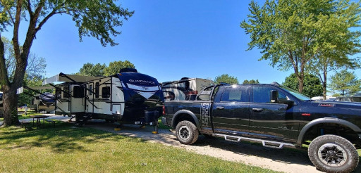 We had to leave a horrible CG to the south. Booked this site on app the day before. Which was a huge plus. This KOA has very limited full hook up sites. As far as KOA standards, it is not great. It is about an hour and half from Chicago and Milwaukee We paid for the deluxe patio site, which had no sewer. Site was not level. Had horrible WiFi, no cable and limited reception. One bathroom and shower was nice, the other was disgusting. Pool was ok, but tons of kids. CG was very kid friendly, with tons for them. The people running the place were still COVID crazy with restrictions for check in and everything else. But what do you expect in crazy Illinois. Makes you insane, when you come from the free parts of the US.