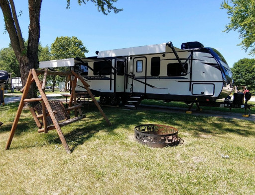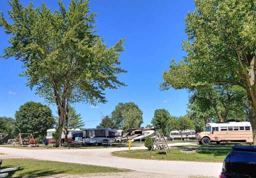 Only the 2nd time camping in our new RV, and we loved staying here for a nice long weekend. Has a great playground and lots of games and activities for kids, fall activities included wagon rides, Halloween decorations, trick-or-treating for kids, and movies in a theatre for kids. The sites are very close together, all sites are gravel or grass for the tent sites, and all the hookups seemed to work very well. We will be back next year!