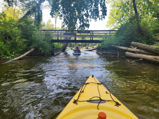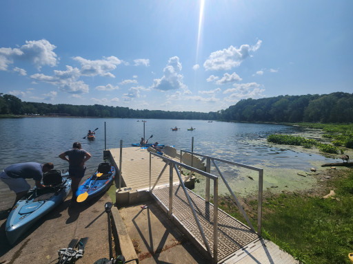Beautiful state park. Easy fun kayaking between lakes. Variety of hiking, mostly wide grassy pathways. Nice paved biking around the park. Very well stocked camp store. Campground is nice, but very crowded. Straight sites not angled. Corner sites back up into other sites at some locations. Okay if you have small campers, larger campers (back ends), will be very close invading other sites. Gravel area for camper, lots of grassy areas and trees between sites. Very enjoyable state park!