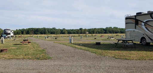 We arrived and there was some confusion about our reservation. We were given site 554, but when we found it, it was occupied. The office said someone must have taken the wrong site so they gave us the one next to it. They do not escort you to your site. They never told us ahead of time, but if you charge it, you pay 3.5% more. They should put CASH on their website. The roads are tight for big rigs. Not every site has a table. They don’t really take reservations. They take your credit card but don’t charge it until you get there. It was conveniently located off the highway, but you can hear highway noise. We stayed here in order to visit the RV Hall of Fame and Museum.