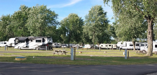 We just stayed here for a week and really enjoyed it! Large pull through sites, gravel and grass. Trees give some shade but are cut so that big rigs pull right through. Asked for firewood and a fire ring-they brought it right over. Met some really nice people.