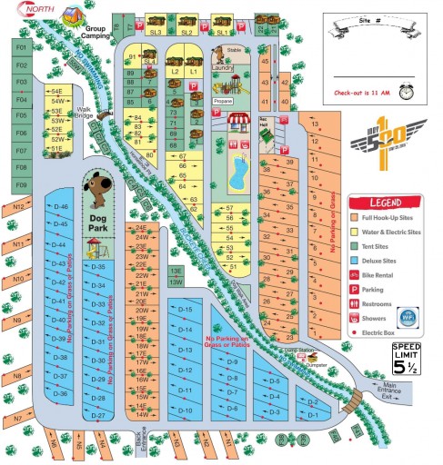 Most RVs were crowded together up front, even though there were plenty of open sites in the back half. Sites share a patio space so plan on getting cozy neither your neighbors. No the best KOA and the camp rules on the check in brochure were written to be funny, but just came off snarky and unprofessional.