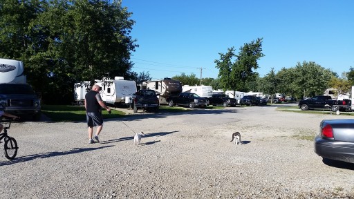 Stayed a week in a 39' fifth wheel. Level gravel lots. Very convenient to downtown; we were there for a convention right next to Lucas Oil Stadium. Even though it was almost closing time when we arrived, they led us to our site in a golf cart. We were not there for the amenities of the park; it was a place to eat and sleep for us as we toured the area. I will stay here next time I am in town.