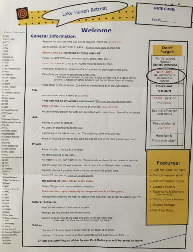 Staff was very friendly, traffic was loud on road beside RV Park. Ponds were nice to look at but very stagnant and spelled terrible. Laundry room in office was very clean and nice. A present stay.