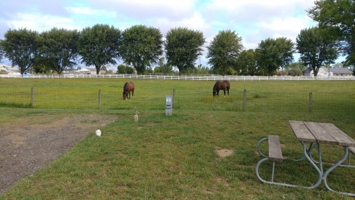 Is very nice, no foreign people working reservations desk. Very helpful people, a little older restrooms but extremely clean, nice laundry facility. Gravel roads and roomy sites with grassy areas but are nice. The rain made things a little muddy but the campground owner has no control over Mother Nature! Very quiet in the back row of sites and loved seeing the beautiful horses! Thought it was a little pricey for us seniors who usually camp in Corps Parks, Passport America and Good