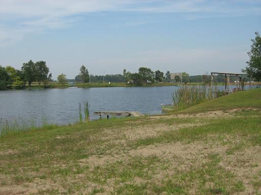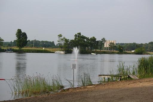 Ladies were nice and fun at check-in. Even got a free pen! Gravel roads with plenty of room to maneuver even without unhooking. Front of park seems to be full timers and the back is for renters which seems a bit nicer. Pull thru’s were long and spacious and pretty level. We could’ve leveled but chose not to for the one night. Really nice lake with sandy area and floating dock to jump off. Lake area was nice. Looked like a 20’s themed party was taking place in the pavilion. Overall a good park!