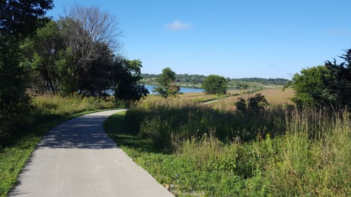 The bike trail alone is worth the price of camping here. Best sites for big rigs are on the bottom loop near the lake. Full hook-ups are available in those sites. Overall this is a surprisingly nice little park.