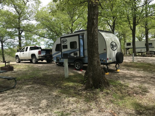 We were immediately greeted by the host. Good, level sites with several pull throughs. Only used the single hole restroom in campground a few times, and each time it was exceptionally clean. Picnic table, fire pit, and electric at each site. Dumping station and drinking water by the shower house when you come in. There is another shared water well at opposite end of campground. Internet is great. (We have Verizon.) Trains are nearby but not too loud. Several LOW CLEARANCE areas in Chariton; check map and warning signs before going through town. Bait house a few minutes east on 34 at the Trading Post. Leeches, worms, and large selection of tackle with friendly staff. Red Haw is a good lake for crappie, blue gill, bass, and catfish. No fishing allowed after 10:30PM. Several kayaks using the lake. There are three kayak launches attached to docks to easily get on and off the water. Overall, well maintained and beautiful park with a friendly park ranger and helpful campground host.