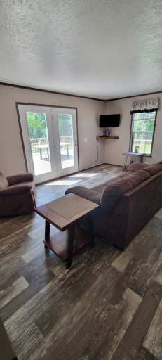 This is a beautiful cabin called Otter Ridge. It has 3 bedrooms and 6 beds! Fully equipped kitchen and has a large deck that overlooks the the Shell Rock river at the Tossnak County park and campground. We couldn't have asked for a more peaceful and serine location. The campground is a good distance from the cabin so we felt privately located. We watched beautiful sunsets from our fireplace. Highly recommend!
