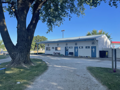 Stayed a night during a family vacation. The little town has McD’s & DQ but we opted for the mexican Fiesta Brava—yum! This is, by far, one of the nicest campgrounds we have visited. Place is clean and RV lot is extremely level. Our site had its own water & sewer hookups which made it super convenient. Showers were impeccable (as reiterated by other reviews)—warm water, clean & the tile was barefoot approved!! You could tell they take pride in offering clean restrooms/showers. There is a nice little convenient shop and they offer propane! The grounds are green and several trees make for nice shade. Kids enjoyed the free WiFi! Unfortunately, we were a little late checking in due to a severe storm an hour out which made for an unhappy check in but all was well the next morning when we checked out. I highly recommend and would absolutely stay again! Happy travels!